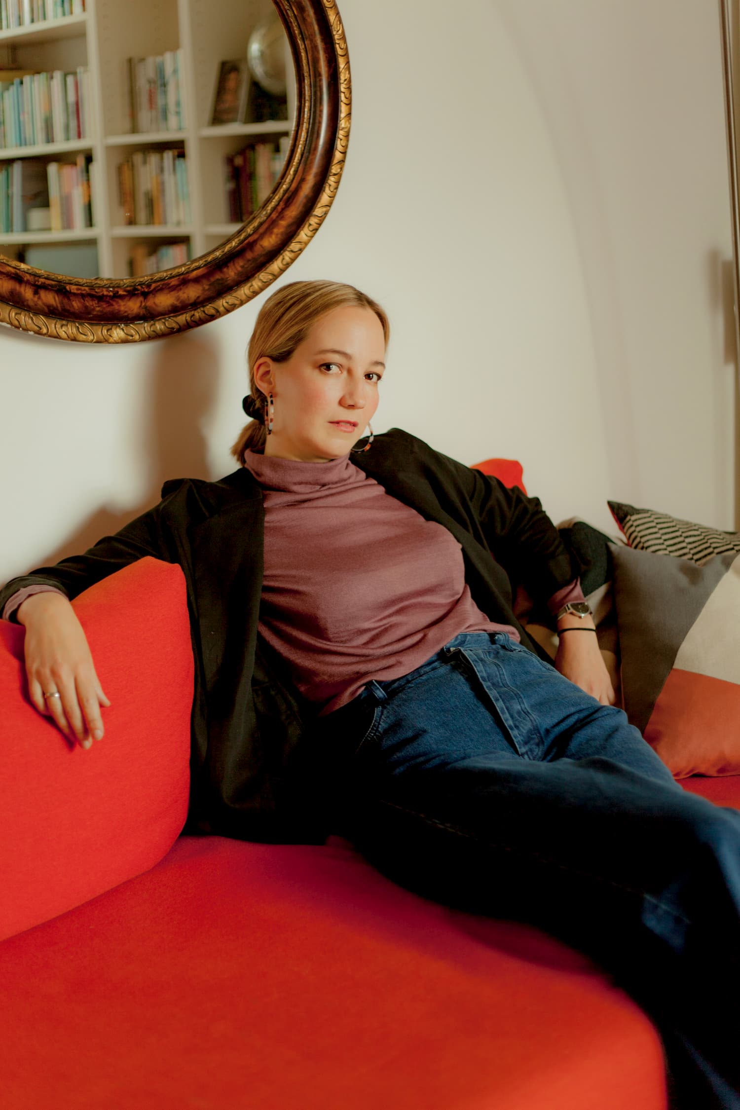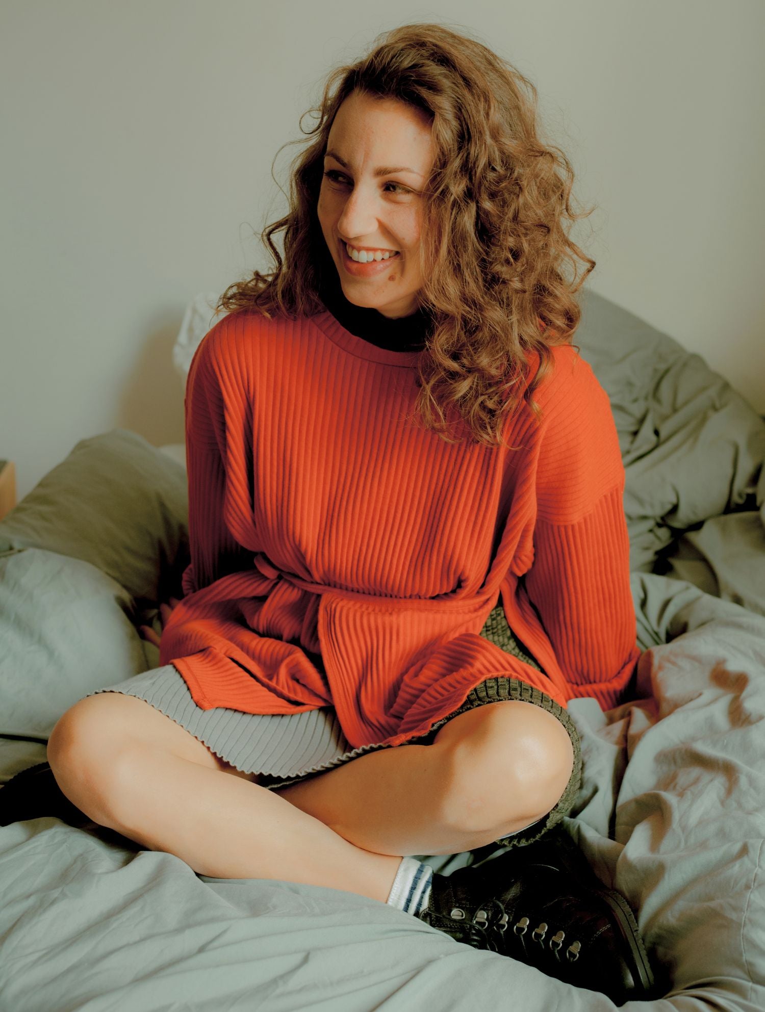 Franziska, die mit Mann und Kind in Berlin-Kreuzberg lebt und freiberufliche Fotografin ist, sagt: "Kleidung ist mir nicht so wichtig. Am Ende des Tages möchte ich schön gekleidet sein, aber aber auch bequem und warm. Ich kaufe nicht viel, aber wenn ich etwas kaufe, ist es ziemlich teuer und ich trage es ewig. Ich finde es anstrengend, einkaufen zu gehen, und bin froh, wenn die Kleidung den Weg zu mir findet, ohne dass ich einkaufen gehen muss. Ich versuche auch, wenig zu konsumieren, mich bewusst und gesund zu ernähren und wenig zu verschwenden. Im Moment freue ich mich nur darauf, nach der Babypause bald wieder arbeiten zu gehen und auf den Urlaub am Meer!