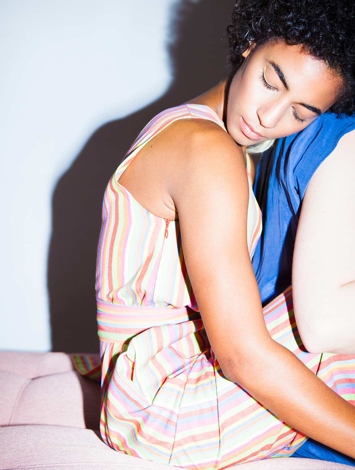 Luna, die aus Spanien stammt und in Berlin Bildende Kunst studiert, sagt: "Für mich ist Mode eine nonverbale Kommunikation, die anderen zeigt, wer wir sind. Ich würde sagen, dass ich zwei Haupttendenzen habe, wenn es um meine Kleidung geht: weite, schlabberige Kleidung, die ich fast immer von meinem Partner klaue, und feminine, figurbetonte Kleider und Röcke. Aber das hängt davon ab, was ich tagsüber mache, ich muss nicht unbedingt gut aussehen, um im Supermarkt einkaufen zu gehen. Manchmal trage ich wirklich nur das, was ich im Kleiderschrank finde, und das ist meist Second Hand. Für mich bedeutet Nachhaltigkeit, den Planeten, auf dem wir leben, nicht unnötig zu schädigen, und ich versuche, nur Dinge zu kaufen, die ich liebe.